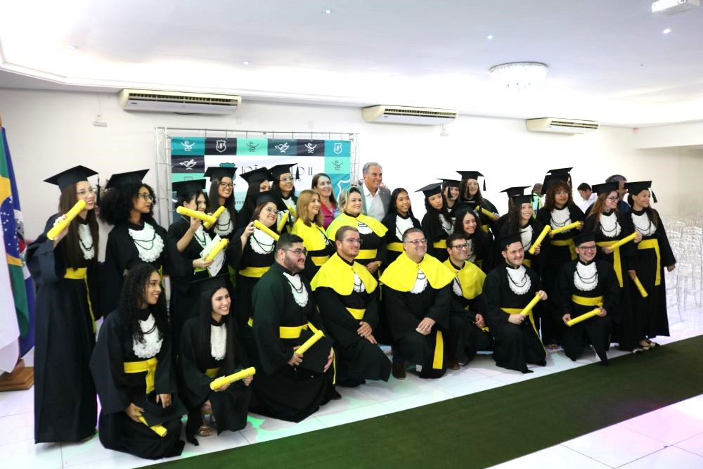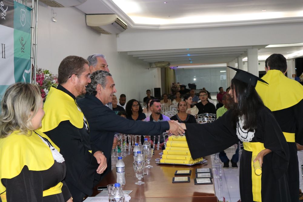 Em seguida, formandos do Curso Técnico em Farmácia receberam os diplomas, que foram entregues pelo paraninfo e patrono da turma.