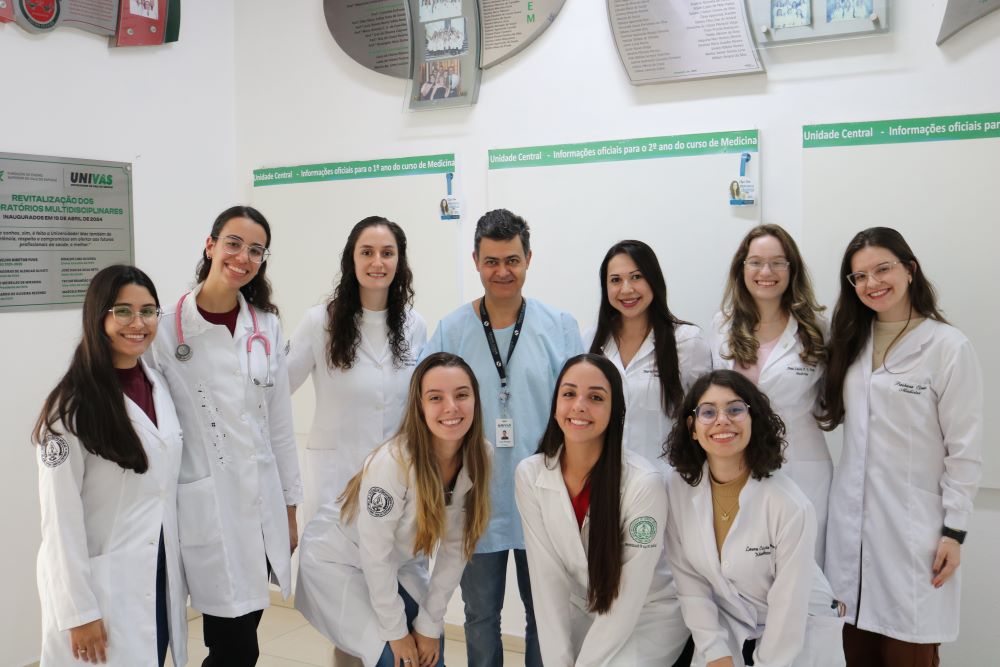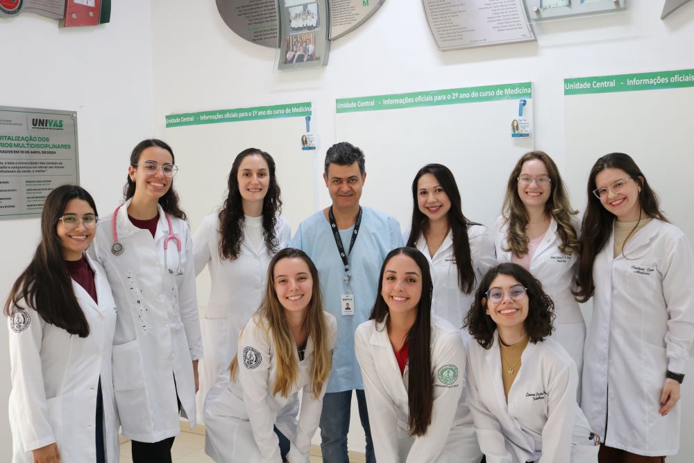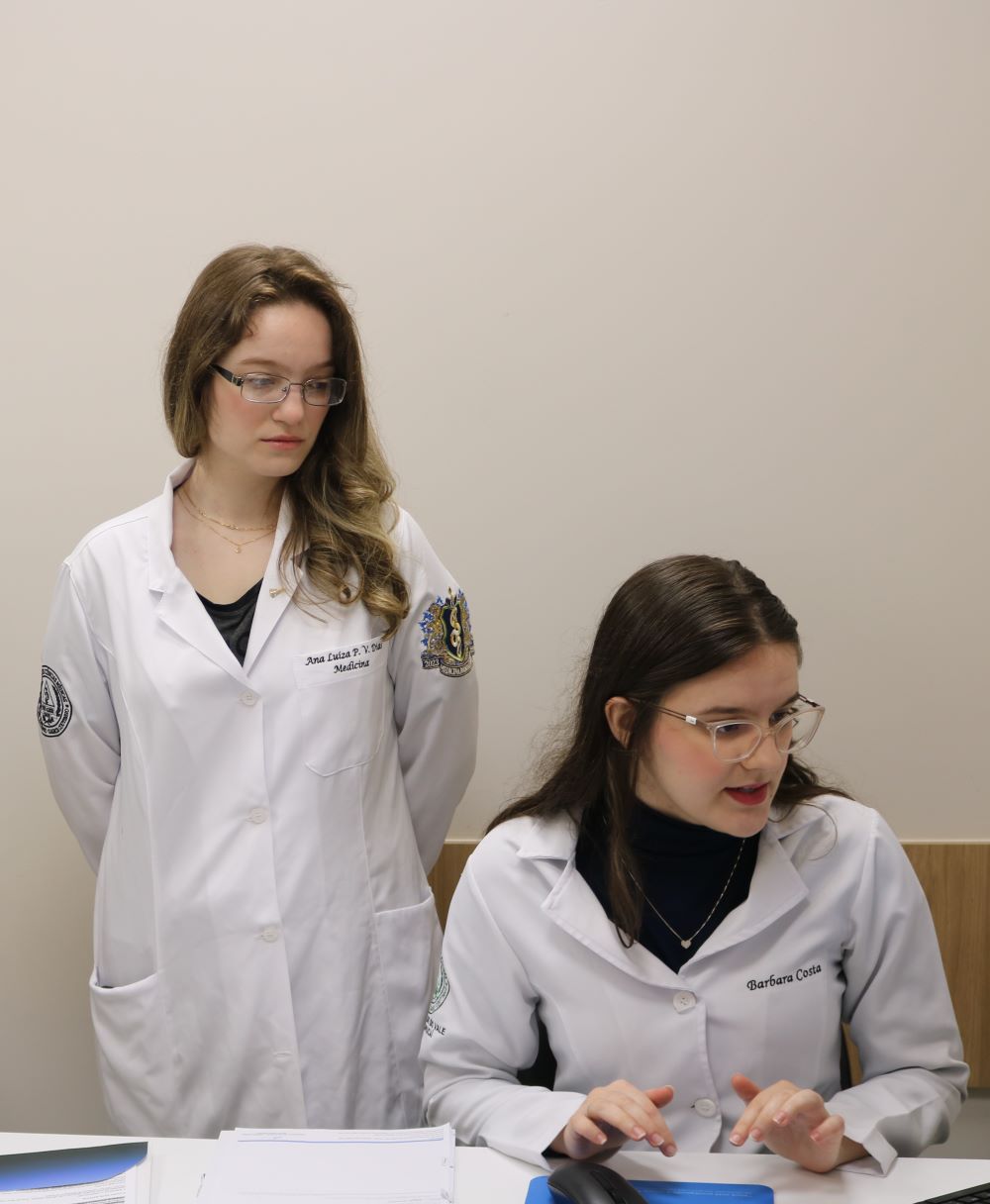 Acadêmicas do curso de Medicina da Univás desenvolvem neste semestre projeto sobre uso correto de medicações inalatórias na área de Pneumologia sob orientação dos professores Dr. José Renato Melo e Dr. Alan Procópio Andrade. “Durante o semestre, tivemos vivência nas áreas de Clínica Médica II, Cardiologia, Pneumologia e Radiologia. No contexto da Pneumologia, observamos uma dificuldade recorrente entre os pacientes quanto ao uso correto das medicações, especialmente em doenças como asma e Doença Pulmonar Obstrutiva Crônica (DPOC). Mesmo com prescrição adequada, muitos pacientes não realizavam a técnica de administração de forma correta, o que compromete a eficácia do tratamento e, consequentemente, a qualidade de vida. Por isso, optamos por desenvolver um projeto voltado para essa temática, considerando sua grande relevância na prática clínica”, explica a aluna Bárbara Costa.