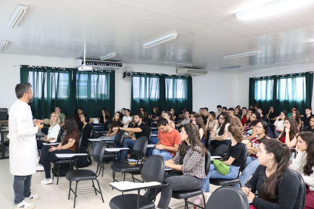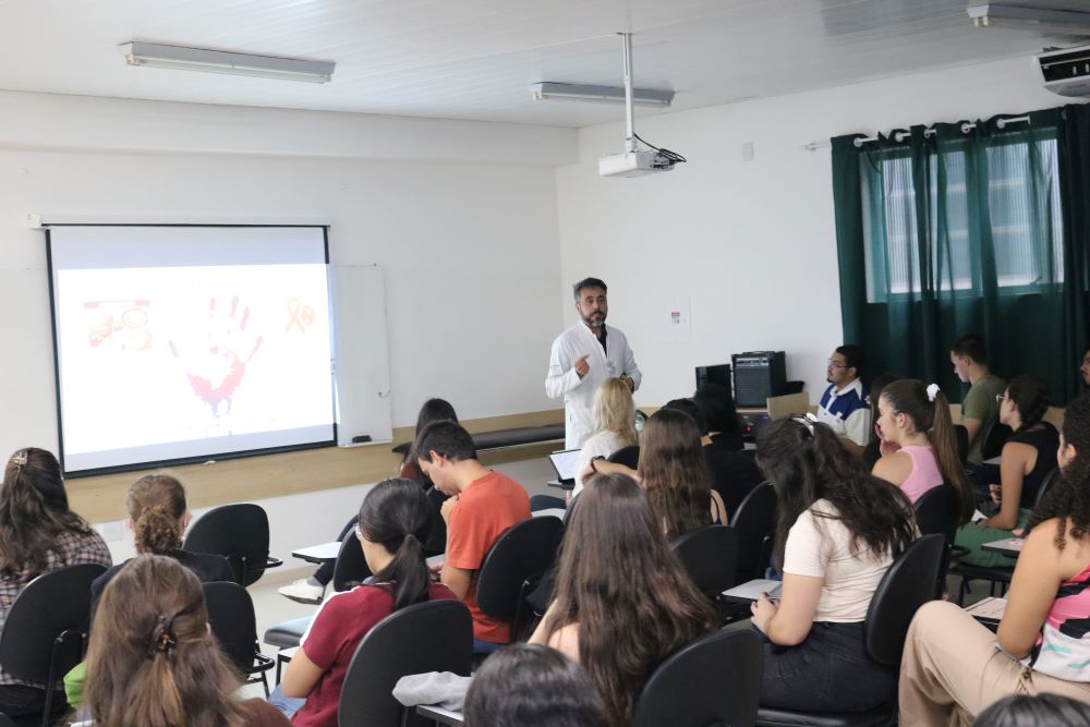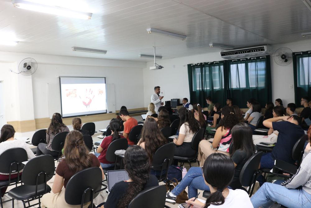 Acadêmicos do primeiro período do curso de Medicina da Univás participaram de um treinamento em biossegurança na tarde desta terça-feira, dia 7 de abril, na Sala 17 da Unidade Central. “O treinamento em biossegurança é um componente essencial na formação médica desde os primeiros períodos, pois estabelece as bases para uma prática clínica segura, ética e responsável”, disse a pró-reitora de Extensão e Assuntos Comunitários e diretora da Unidade Central, professora do curso de Medicina Silvia Mara Tasso.