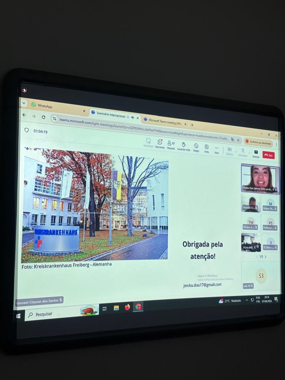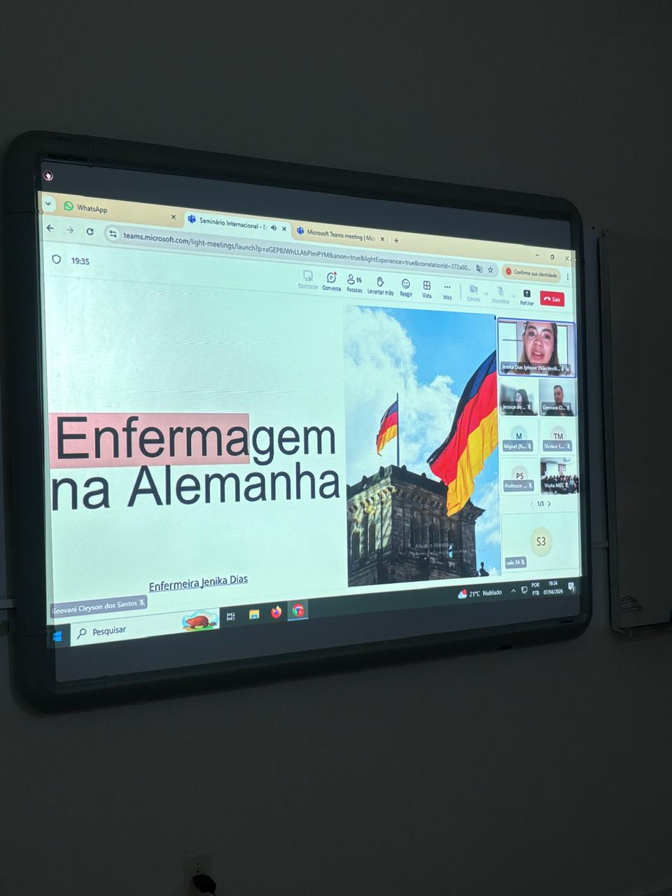 Diretamente da Alemanha, a enfermeira Jenika Ferreira Dias, que atua no Hospital Kreiskrankenhaus Freiberg, compartilhou sua experiência profissional, abordando aspectos relacionados à organização dos serviços de saúde, exigências formativas e desafios culturais no exercício da enfermagem no cenário europeu.